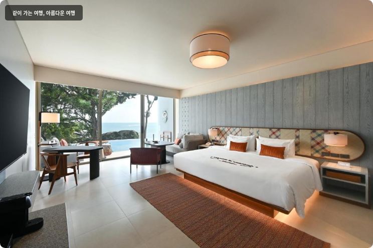 제가 묵었던 객실은 정말 넓고 쾌적했어요. 모던하면서도 태국 전통의 아름다움을 느낄 수 있는 인테리어가 인상적이었고, 특히 넓은 발코니에서 바라보는 바다 전망은 그야말로 예술이었어요. 💙 객실에는 에어컨, 린넨 서비스는 물론이고, 편안한 침대, 넓은 옷장, 안전 금고, 미니바 등 필요한 모든 것이 완벽하게 갖춰져 있었어요. 특히 매일 제공되는 생수와 커피, 티백은 정말 유용했답니다.