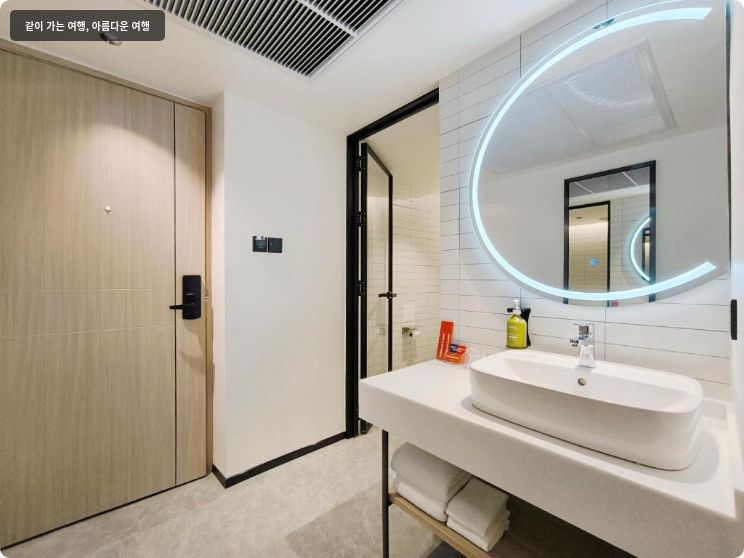 욕실 또한 깨끗하고 넓었어요. 샤워부스에는 따뜻한 물이 콸콸 잘 나왔고, 샴푸, 컨디셔너, 바디워시 등 어메니티도 충분히 준비되어 있었답니다. 수건도 넉넉하게 준비되어 있어서 편안하게 사용할 수 있었어요. 드라이기 성능도 좋아서 머리 말리는 시간도 단축할 수 있었죠.