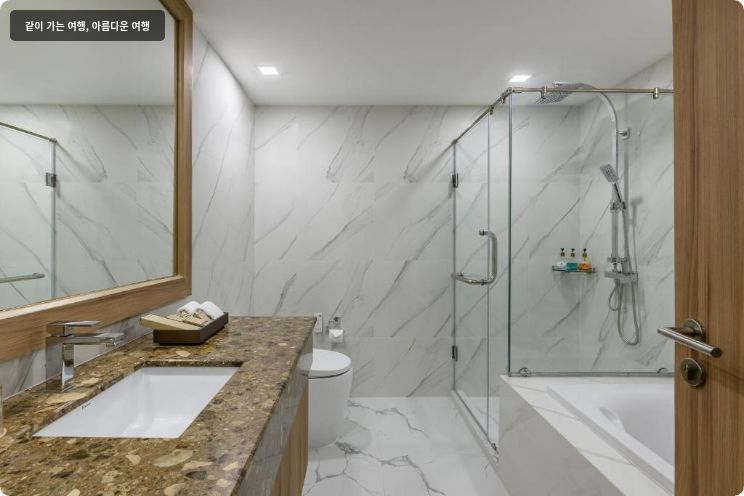 욕실도 넓고 깨끗했으며, 샤워 시설도 훌륭했어요. 수압도 좋았고, 따뜻한 물도 잘 나왔답니다. 어메니티도 샴푸, 컨디셔너, 바디워시, 비누, 칫솔, 치약 등 필요한 모든 것이 갖춰져 있어서 따로 챙겨갈 필요가 없었어요. 무엇보다, 욕실에 준비되어 있던 폭신한 목욕 가운이 정말 마음에 들었답니다.
