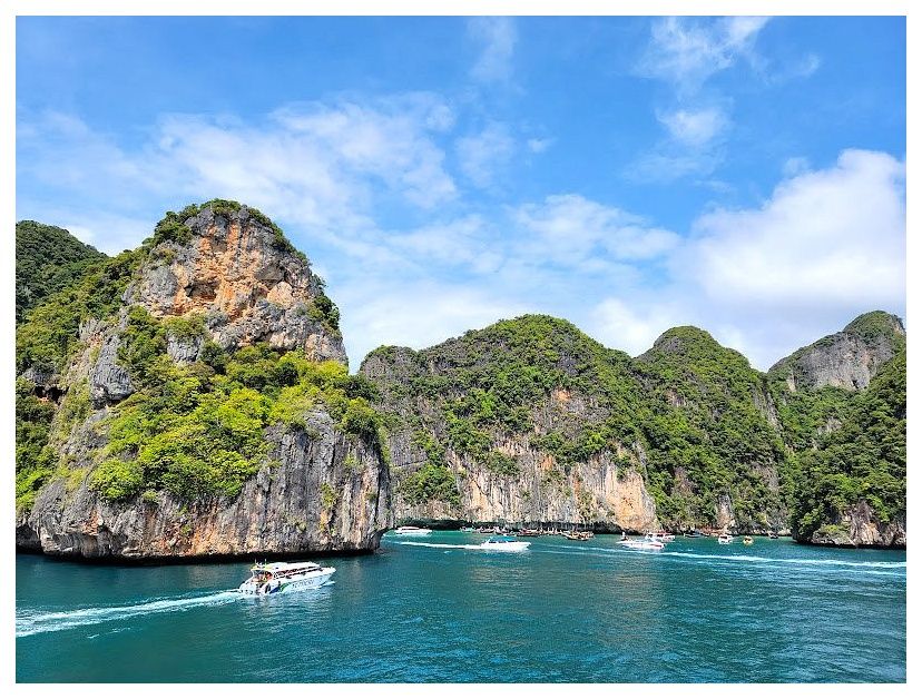 꼬피피 돈 섬에서 롱테일 보트를 타고 삐레 만으로 향하는 길! 에메랄드빛 바다가 눈 앞에 펼쳐지는데, 그 풍경 자체가 이미 예술 작품이었어요! 🛥️ 주변의 석회암 절벽들이 병풍처럼 둘러싸고 있어서, 마치 비밀 정원에 들어가는 듯한 설렘이 가득했답니다. 보트에서 내리자마자 보이는 투명한 물 색깔에 감탄사를 연발했어요. “와… 진짜 그림 같다!” 라는 말밖에 안 나오더라구요.