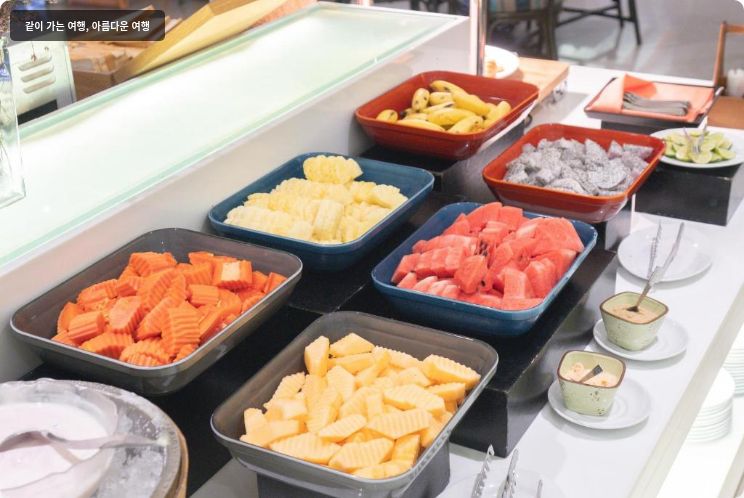 아침 식사는 호텔 내 레스토랑에서 뷔페식으로 제공되었는데, 종류도 다양하고 맛도 정말 훌륭했어요. 🥐 빵, 시리얼, 과일, 샐러드, 태국 음식 등 다양한 메뉴가 준비되어 있어서 취향에 맞게 골라 먹을 수 있었답니다. 특히, 갓 구운 빵과 신선한 과일이 정말 맛있었어요. 커피도 맛있어서 아침부터 기분 좋게 하루를 시작할 수 있었답니다.