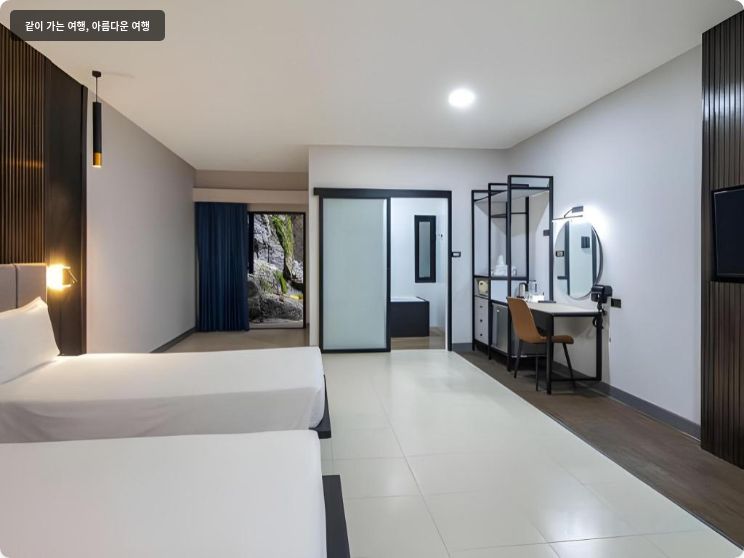 객실에 들어서는 순간, 탄성이 절로 나왔어요! 😍 넓고 깨끗한 룸 컨디션은 물론, 은은한 조명과 편안한 침대가 완벽한 휴식을 약속하는 듯했죠. 발코니에서 보이는 푸켓의 아름다운 풍경은 덤! 🌅 아침에 일어나 커튼을 열면 눈부신 햇살과 푸른 야자수가 눈앞에 펼쳐지는데, 정말 꿈만 같았어요. 😴