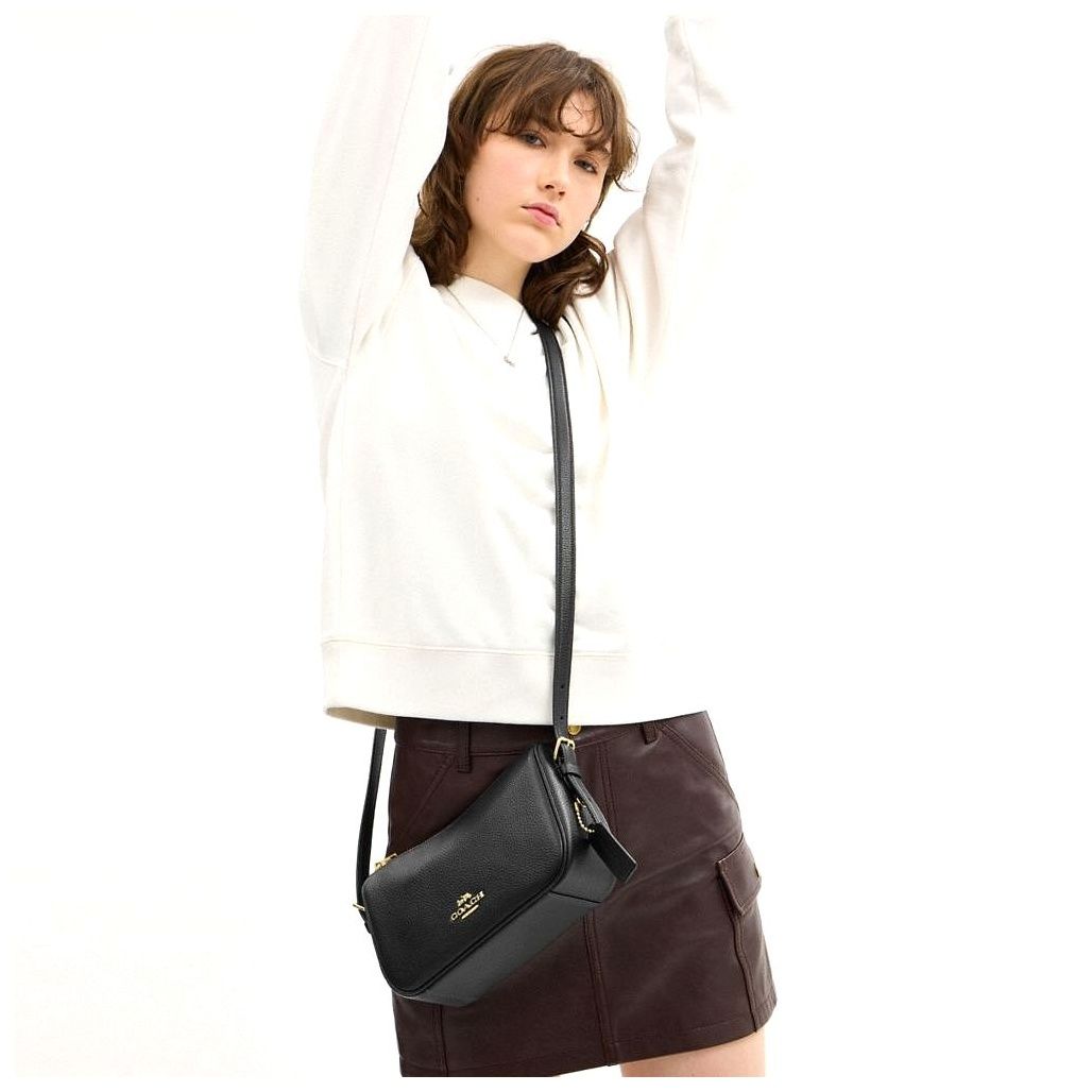 가방의 소재는 Refined pebble leather라고 하는데, 만져보면 정말 부드럽고 고급스러워요. 👍 스크래치에도 강할 것 같아서 데일리백으로도 부담 없이 들고 다닐 수 있을 것 같아요. 앞면에는 코치의 로고가 금색으로 새겨져 있는데, 과하지 않으면서도 포인트를 줘서 정말 예쁘답니다. 지퍼 부분과 스트랩 연결 부분에도 금색 디테일이 들어가 있어서 전체적으로 통일감 있고 세련된 느낌을 줘요. 박음질도 꼼꼼하게 잘 되어 있어서 오래 사용할 수 있을 것 같아요.