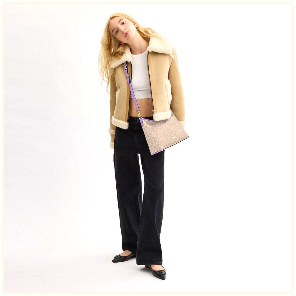 제가 구매한 코치 로렐 숄더백은 시그니처 코팅 캔버스 소재로 되어있어서 고급스러움이 물씬 느껴져요. 특히 IMY1K 컬러, 즉 샌드/아이리스 색상의 조합이 정말 예술이랍니다! 은은하면서도 세련된 색감 덕분에 어떤 옷차림에도 찰떡같이 잘 어울려요. 데일리백으로 손색이 없죠. 👍