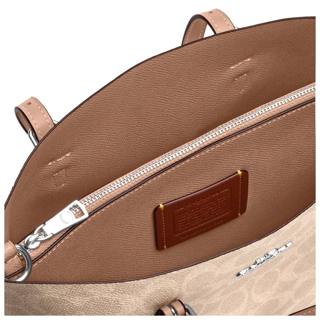 코치 몰리 토트백 25의 가장 큰 매력은 바로 고급스러운 시그니처 코팅 캔버스 소재예요. Sand/Taupe 컬러 조합이 정말 은은하고 세련돼서 어떤 스타일에도 잘 어울린답니다. 캐주얼한 데님룩에도, 여성스러운 원피스에도 찰떡! 👍 데일리백으로 손색이 없어요.
