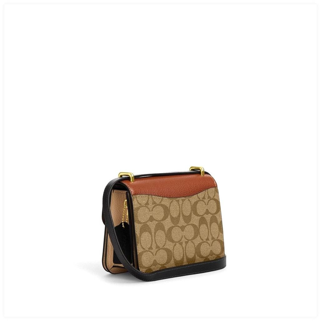코치 [모건 스퀘어 크로스바디] (CL462-IME7V)를 처음 만났을 때, 마치 한 폭의 그림을 보는 듯한 느낌이었어요. 은은한 골드 톤과 카키 멀티 컬러의 조화가 정말 고급스럽고 세련됐거든요. 보자마자 ‘아, 이건 내 가방이다!’라는 생각이 번개처럼 스쳐 지나갔답니다. 평소 미니멀하면서도 포인트를 줄 수 있는 가방을 선호하는 저에게는 완벽한 디자인이었어요. 시그니처 코팅 캔버스와 리파인드 페블 레더, 스무스 레더의 조합은 흠잡을 데 없이 완벽했어요.