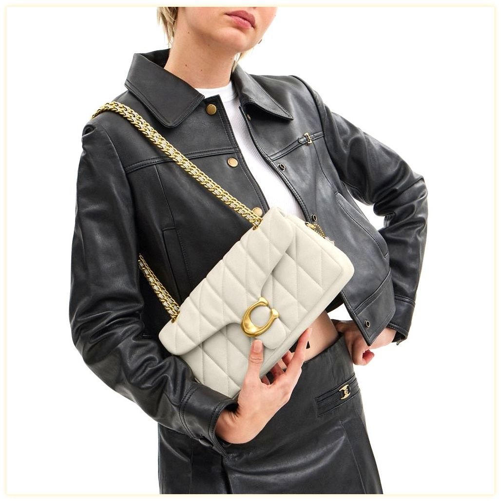 📌 abcd123: 코치 태비 숄더백, 드디어 제 손에 들어왔네요! 퀼팅 나파 가죽의 부드러움에 반하고, 체인 스트랩 덕분에 다양한 스타일 연출이 가능해서 너무 만족스러워요. 크기도 적당해서 데일리 백으로 딱입니다!
